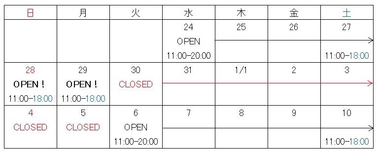 - 12月24日(水)より冬物セールスタート!(12/22)