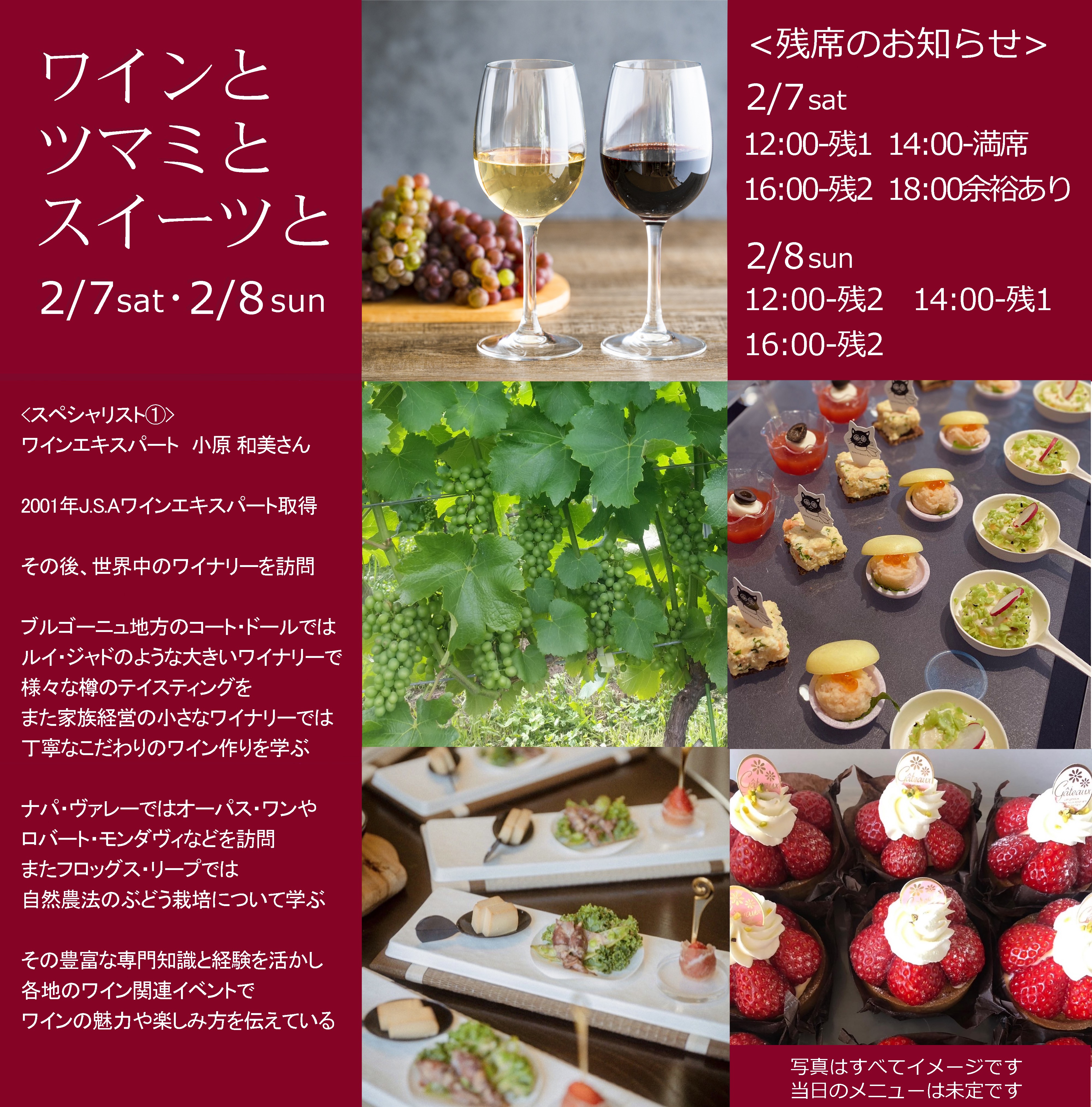 - 「ワインとツマミとスイーツと」残席のお知らせ♪(01/7)