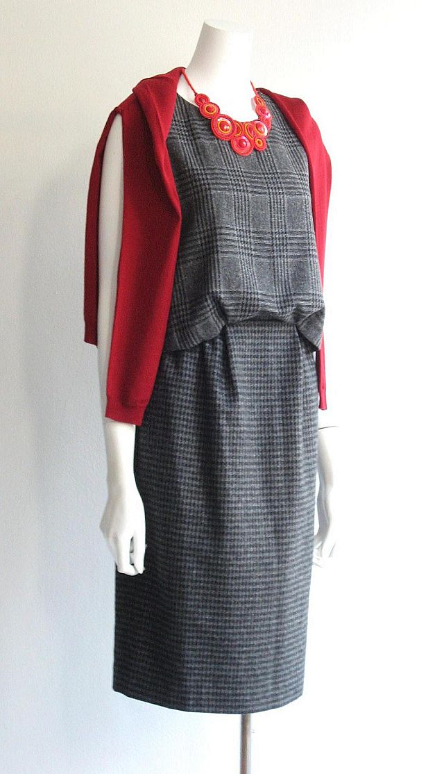 深いグリーンに大きいチェック柄のワンピースは